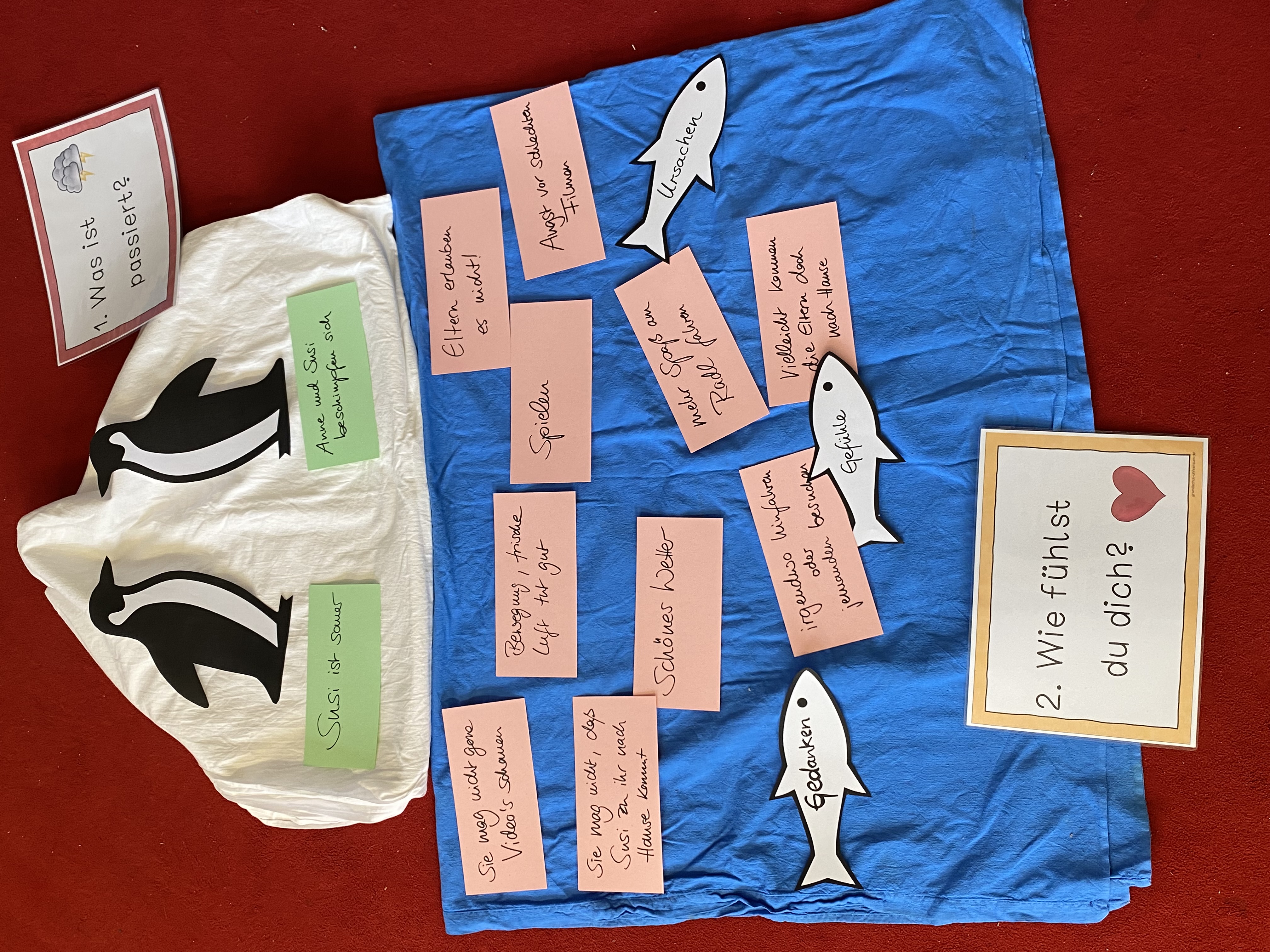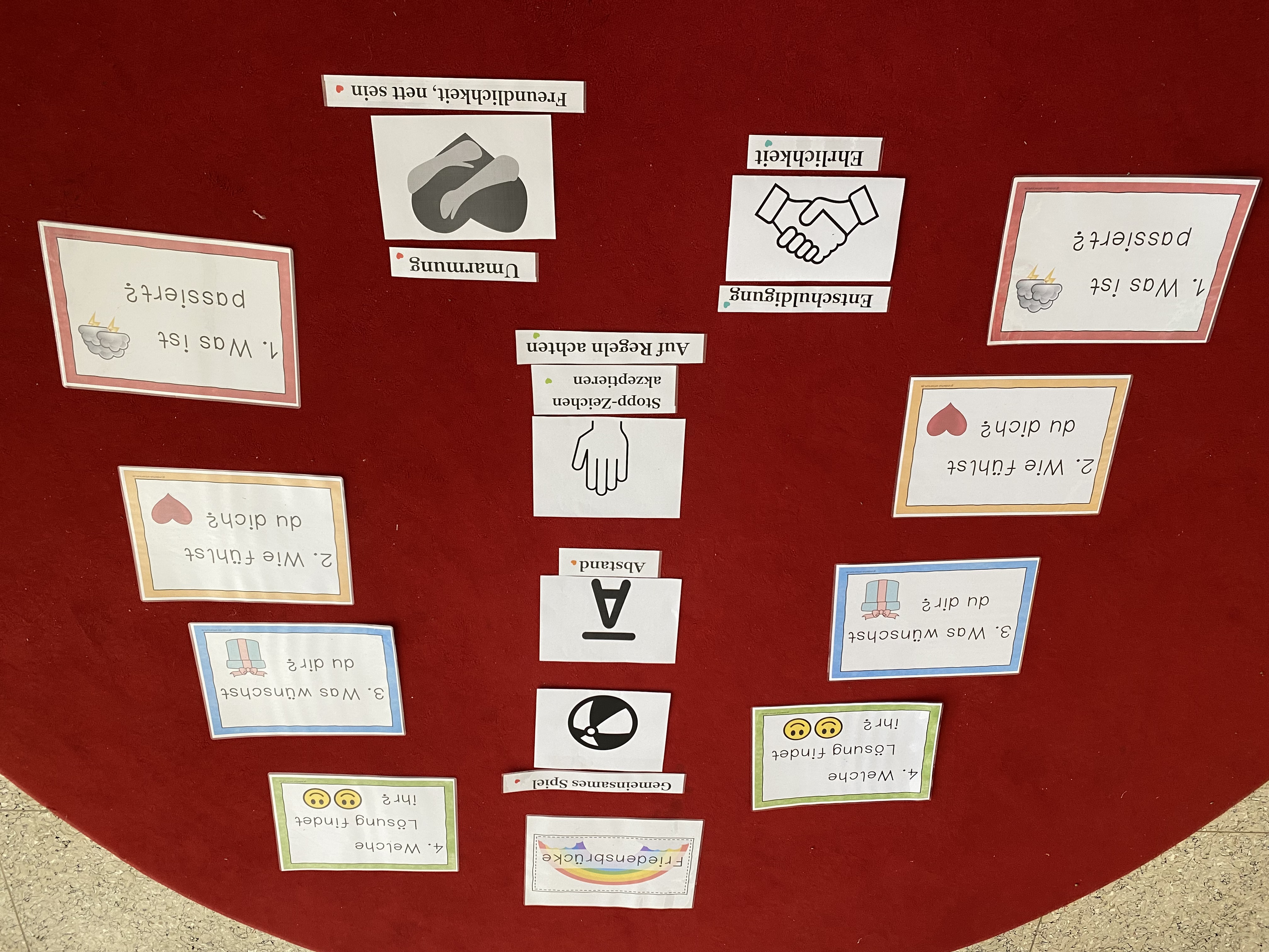 Ein besonderer Fokus lag auf dem Erlernen von Gesprächstechniken wie aktivem Zuhören und dem Perspektivwechsel – zentrale Fähigkeiten, um Streitigkeiten im Schulalltag lösen zu können. In Rollenspielen erprobten die Kinder ihr Wissen und stellten typische Konfliktsituationen aus dem Schulalltag nach. Dabei lernten sie, Schritt für Schritt Lösungen zu erarbeiten und als neutrale Vermittler aufzutreten.