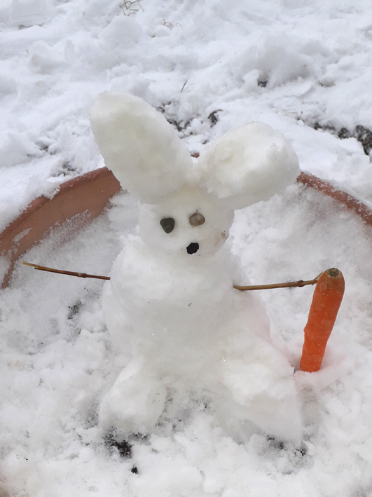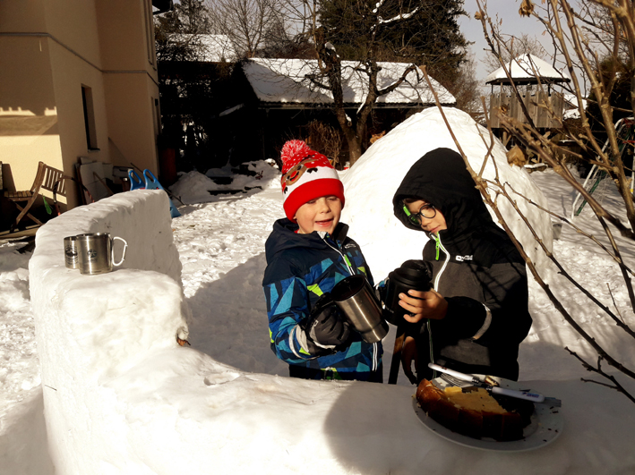 Es entstanden Schneemänner in verschiedenen Größen und mit unterschiedlicher Ausstattung, Schneehasen, Iglus, Basisstationen, Rutschen, Schneebars und noch jede Menge mehr. Leider war bei manchen Bauwerken das Tauwetter schneller als der Fotoapparat, aber der nächste Winter kommt bestimmt.