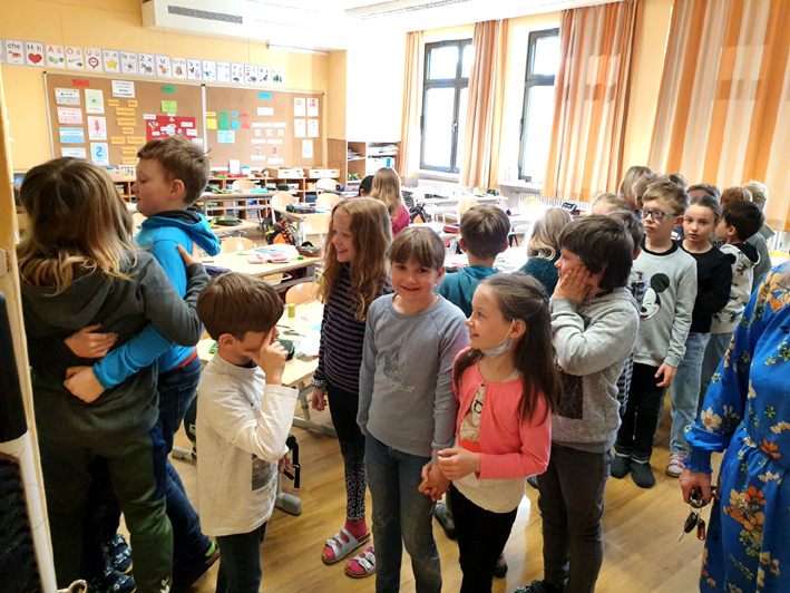 Für die Schüler der ersten und zweiten Klassen der Grundschule Bernau war die Überraschung groß, als am Donnerstag vor den Ferien plötzlich die Telefone ihrer Lehrerinnen klingelten. Am Apparat war nämlich der Osterhase, der erzählte, er habe eine Überraschung für sie.