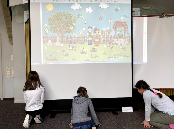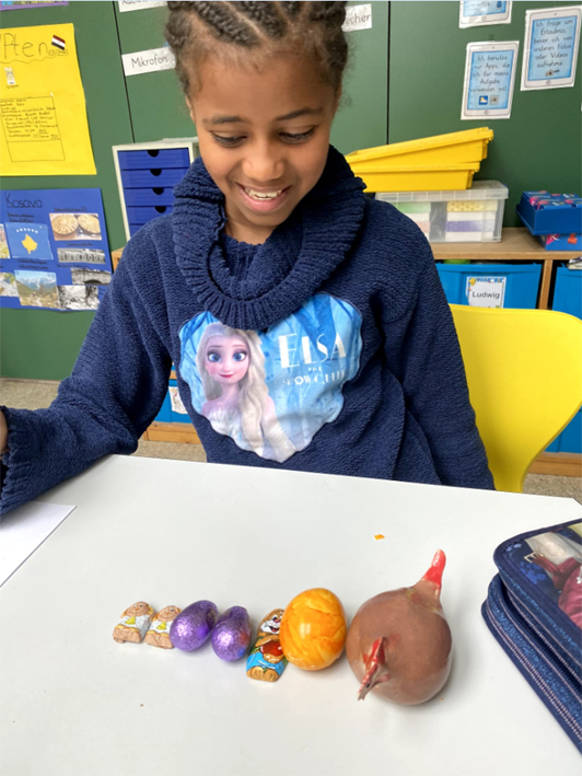 Bei der Osterüberraschung der Viertklässler am nächsten Tag war der Osterhase in diesem Jahr wohl etwas im Stress. Nur so lässt sich erklären, dass er das einzigartige, goldene Ei verloren hatte! Zu seinem Glück passierte das in der Grundschule Bernau. Denn die aufgeweckten Viertklässler nahmen sofort hilfsbereit die Lesespur auf, ließen sich durch Hinweise und Tipps führen und folgten so der Fährte des verlorenen Eis. Ob analog auf Hinweiszetteln oder digital mit dem iPad - die Hinweise waren an vielen Orten zu finden. Nur, wer genau las, konnte das Ziel erreichen, manch einer musste auch zu einer Zwischenstation zurück.