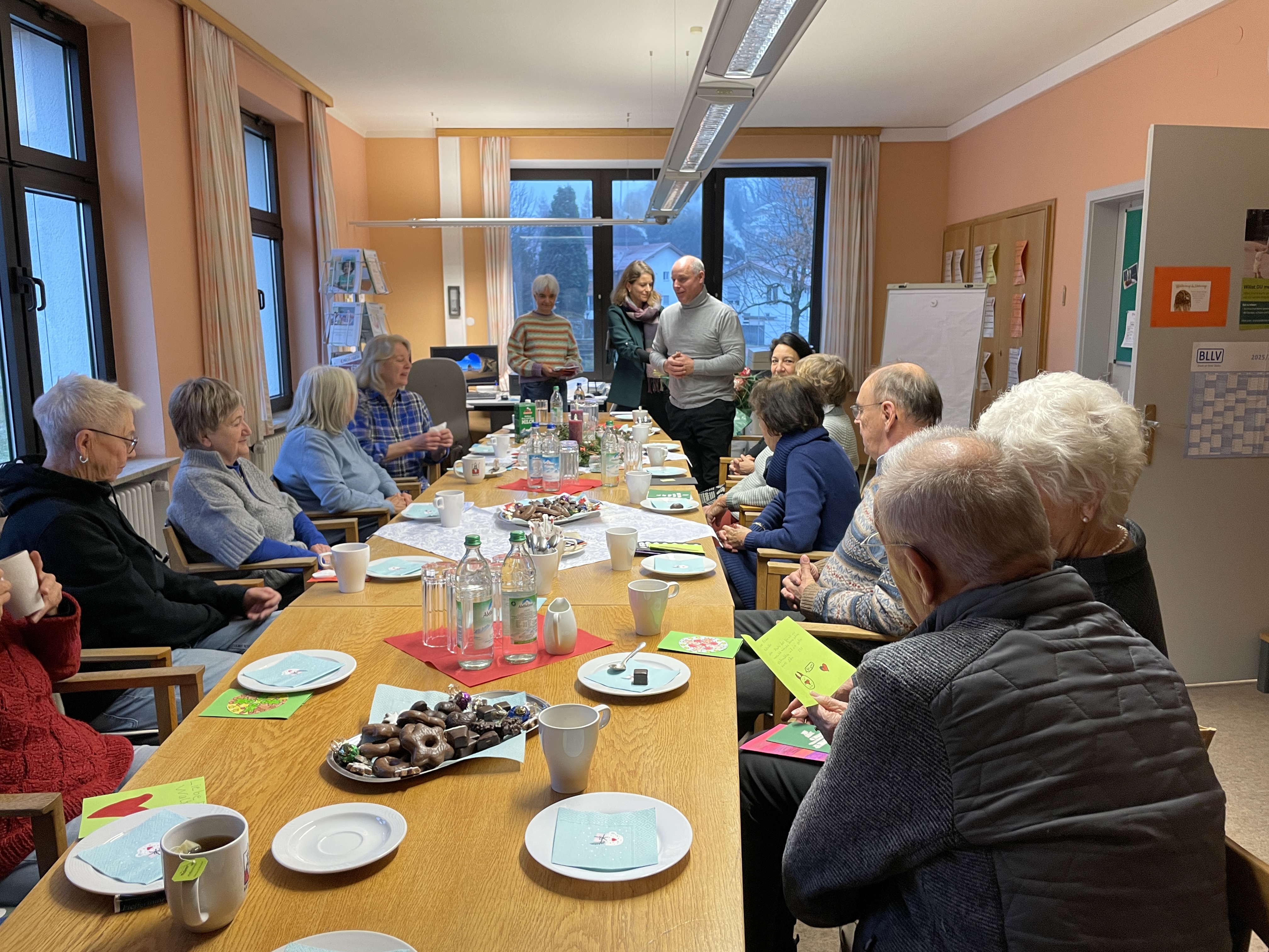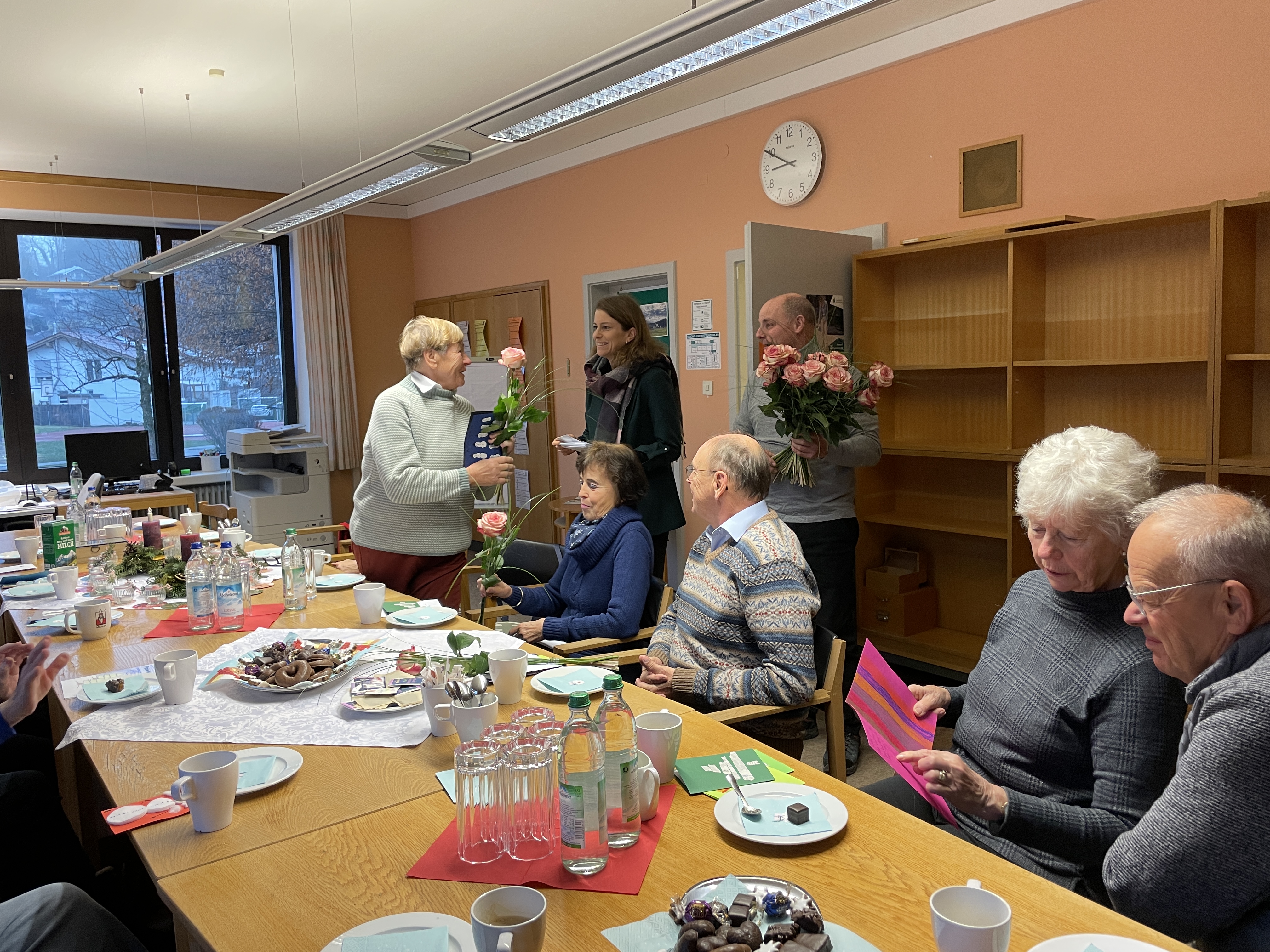 Im Rahmen des seit vielen Jahren traditionellen Adventskaffees im Lehrerzimmer der Grundschule bedankten sich am Nikolaustag die Lernpatenkinder mit Weihnachtskarten, eine vierte Klasse sang das Weihnachtslied Feliz Navidad; im Namen der Kranken- und Bürgerhilfe überreichten Maria Oberlechner und Franz Praßberger ebenso wie der Sozialfonds durch Sascha Klein und Alois Müller neben Blumen ein Präsent für dieses wertvolle Engagement.
