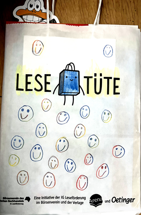 Groß war die Freude und Begeisterung bei den Erstklässlern der Grundschule Bernau kurz vor den Herbstferien als sie von ihren Paten aus den 3. Klassen eine selbst bemalte, liebevoll gestaltete „Lesetüte“ überreicht bekamen. Diese Taschen, gefüllt mit dem Buch „Das Känguru trägt keine Schuh“, einem Lesezeichen, einem Türschild und anderen Geschenken waren eine Spende der Buchhandlung Ganter in Bernau an die Leseanfänger.