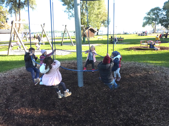 Die letzten kräftigen Sonnenstrahlen nutzten die Klassen 1a und 1b mit ihren Lehrerinnen Christina Mroczeck und Andrea Thelen für ihren ersten Wandertag und starteten mit Rucksäcken sowie jeder Menge guter Laune am 20.10.21 zu ihrer Tour auf den Spielplatz am Chiemsee.