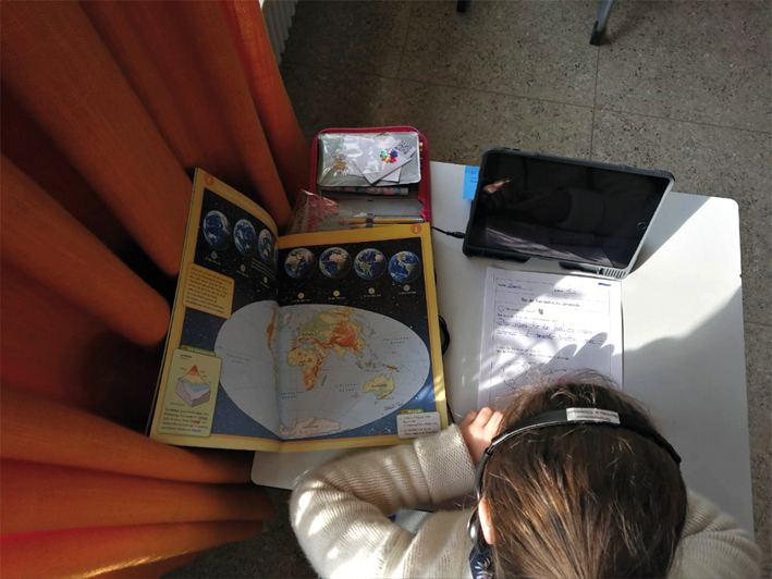 Aber auch die „alten“ Medien wie Atlanten oder der Globus fanden in der Lernlandschaft ihren Platz und halfen den Schüler*innen den Weg der Kakaobohne nachzuvollziehen.