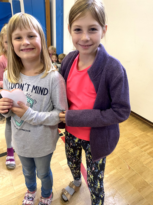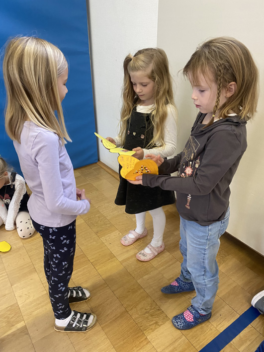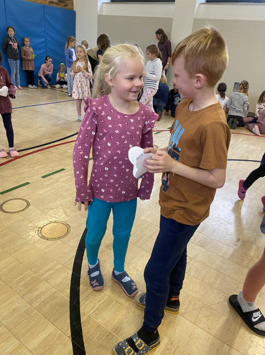 Die Großen versprachen ihren Patenkindern, für sie zu sorgen und ihnen bei Problemen zur Seite zu stehen. Dieses Versprechen überreichten sie ihnen bereits in der darauffolgenden Woche in Form eines liebevoll gestalteten Patenherzes. Auch das Schullied durfte dabei nicht fehlen, das die Erstklassler voll Begeisterung schnell von ihren Paten lernten.