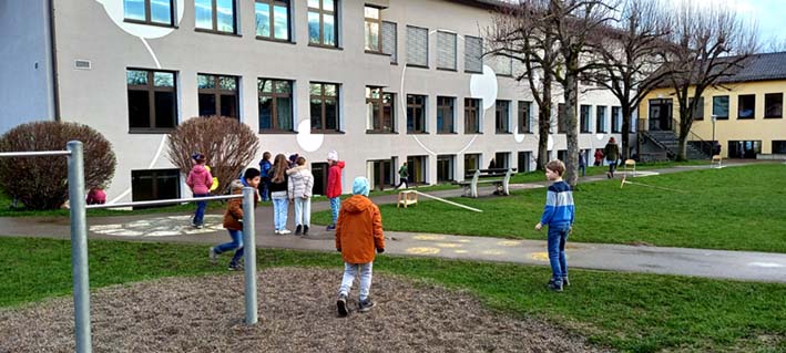 Kurz vor den Osterferien, am 31.03.23, trafen sich die 2. und 4. Klassen zum gemeinsamen Osterspaß auf dem Pausenhof.