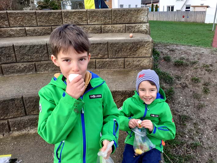 Am Ende wurden die zu Beginn gefunden Ostersachen gleichmäßig verteilt und zusammen mit den mitgebrachten Eiern direkt verputzt.