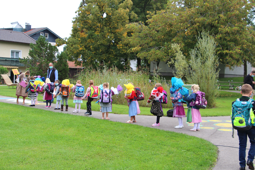 Aufgeregt und fein herausgeputzt erlebten die 50 ABC-Schützen der Klassen 1a und 1b ihren 1. Schultag an der Grundschule Bernau. Jede Klasse bekam eine eigene Feier und Begrüßung unter Beachtung aller Hygienemaßnahmen. Die feierliche Segnung in der Pfarrkirche St. Laurentius von Pfarrerin Betina Heckner und Barbara Sailer hatte die Kinder und ihre Angehörigen zunächst auf den besonderen Tag eingestimmt.