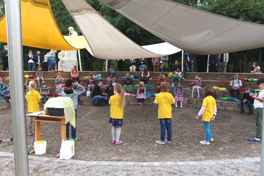 Rektorin Petra Henz und Konrektorin Petra Matthes begrüßten die Erstklassler und ihre Eltern im Amphitheater der Schule. Schwungvoll eröffneten die „Großen“ unter der Leitung von Marion Glaser mit dem Schullied. Außerdem begrüßten Erstklassler vom Vorjahr, nun in der zweiten Klasse, die Neuankömmlinge mit einem Gedicht und wünschten viel Glück. Rektorin Henz freute sich über so viele neue Gesichter, wünschte Freunde sowie viel Spaß beim Lernen und zeigte sich zuversichtlich, dass alle ihre Sache mit Sicherheit gut machen und ihr Bestes geben. Passend zu einer kurzen Einschulungs-geschichte vom Schulkind Nele und ihrer Schildkröte Speedy, die sich tatsächlich in der Schultüte versteckt hatte, bekamen die Erstklässler zur Erinnerung an ihren ersten Schultag an der Grundschule Bernau eine kleine Schildkröte als Symbol für Schutz und Weisheit geschenkt.