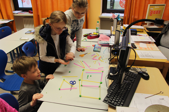 Die Schülerinnen und Schüler arbeiten auf ihrem eigenen Leistungsniveau an offen gestellten Aufgaben und entdecken dabei nicht nur Muster und Strukturen, sondern auch Mathematik im Alltag und geometrische Inhalte. Der Gebrauch einer gemeinsamen Fachsprache wird bei der Präsentation der Ergebnisse und im Austausch über Lösungswege unabdingbar. So begreifen die Kinder schnell die Bedeutung von Fachbegriffen.