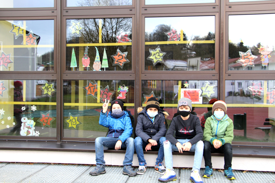 In diesem Jahr hatten die Lehrer die Fensterfront zum Hartplatz hin mit 24 Sternen geschmückt. Für jeden Tag haben die Klassen 3c und Klasse 4a ein Bild oder eine Anregung, wie man sich zum Beispiel sich selbst und anderen eine Freude bereiten kann, vorbereitet. Es wird also jeden Morgen spannend, wo das nächste Adventskalenderfeld zu finden ist und was Neues darin hängt.