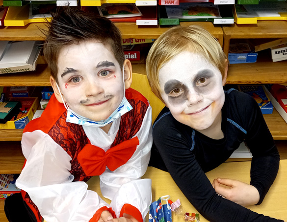 Am Unsinnigen Donnerstag oder Freitag durften die Kinder und Lehrer maskiert in die Schule kommen, sich in ihrer Verkleidung den anderen vorstellen und den Tag in der Schule als Spiderman, japanisches Mädchen, Vampir, König, Prinzessin, Tiger, Pirat, Ninja oder Pippi Langstrumpf verbringen.